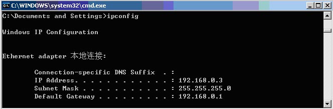 在windows的cmd環(huán)境下輸入ipconfig確認(rèn)PC機(jī)設(shè)置的IP是否正確。