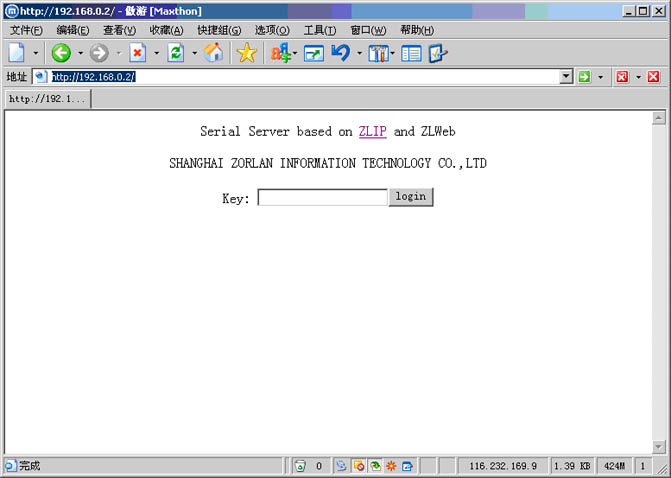 基于ZLIP和ZLWeb的串口服務(wù)器——ZLSerialServer,提供了串口RS232和以太網(wǎng)之間的相互數(shù)據(jù)轉(zhuǎn)化功能,并且用戶可以通過Web瀏覽器修改波特率、IP地址、端口、登陸密碼等參數(shù)。在線咨詢