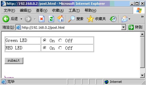 Green LED和RED LED都選擇On,點擊submit,瀏覽器顯示反饋頁面: