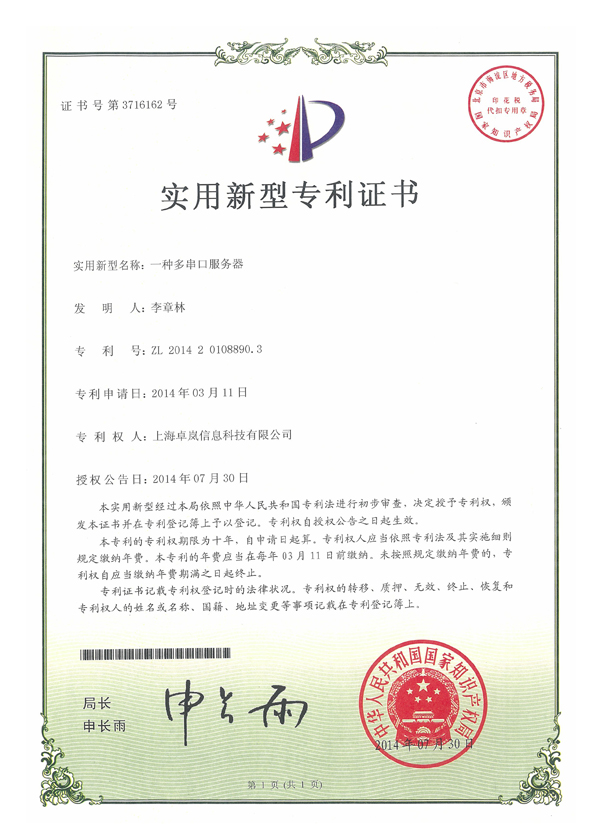 外觀設(shè)計(jì)專利證書
