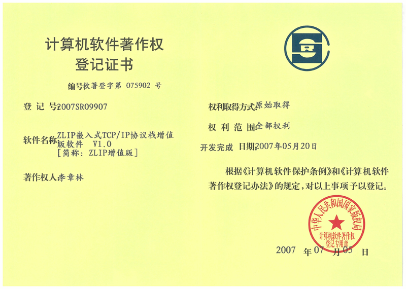 計(jì)算機(jī)軟件著作權(quán)登記證書