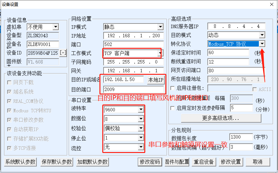 2.設(shè)備端口號要和風(fēng)機從站設(shè)置成一致的。