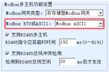 默認(rèn)是RTU的。然后確定,然后點(diǎn)擊“修改參數(shù)”。這樣設(shè)備就支持Modbus TCP轉(zhuǎn)ASCII了。