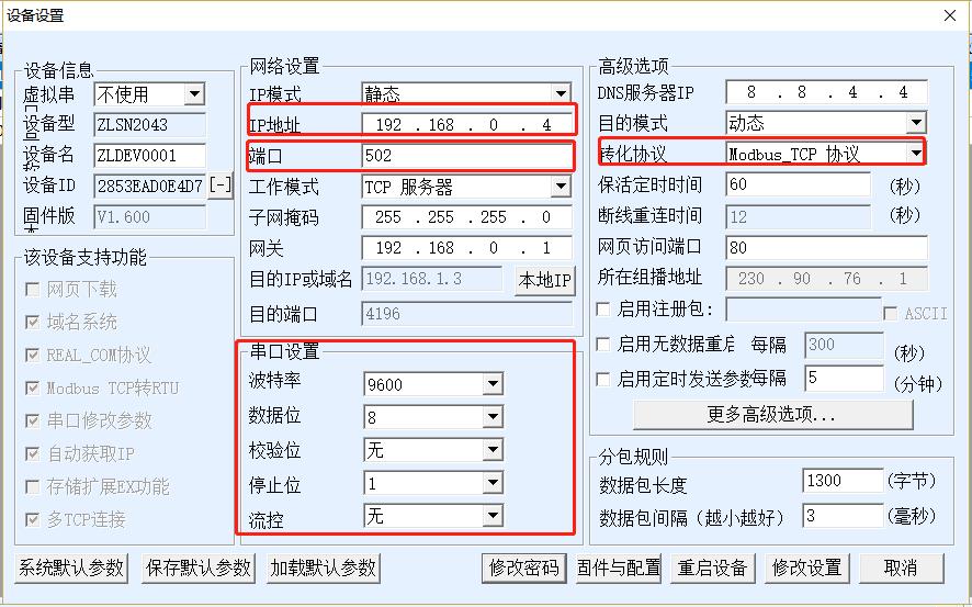 第三步,本文遠程服務(wù)器的IP地址為192.168.0.4,遠程端口號設(shè)為502。所以客戶端側(cè)該數(shù)據(jù)結(jié)構(gòu)的各項值為: