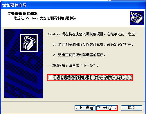 2.選擇“不要檢測(cè)我的調(diào)制解調(diào)器”,然后點(diǎn)擊下一步。