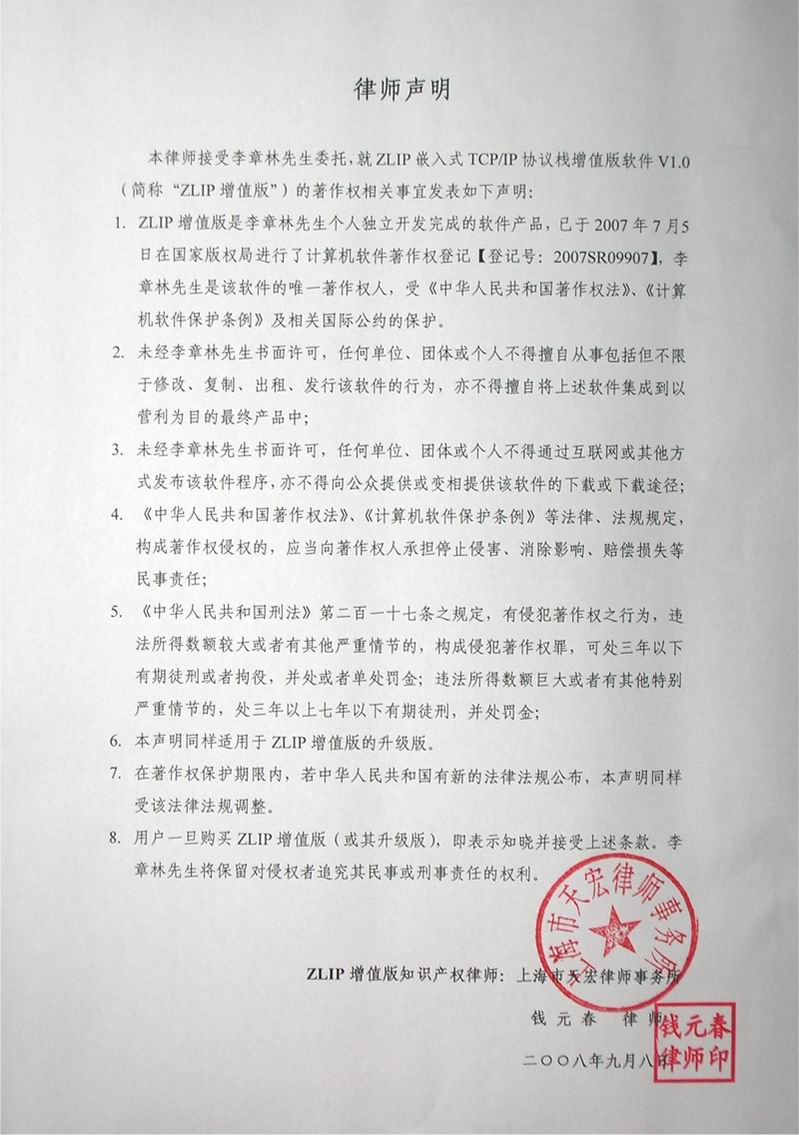 上海市天宏律師事務(wù)所由中國著名知識產(chǎn)權(quán)律師朱妙春先生于1998年創(chuàng)辦,是一家專業(yè)提供知識產(chǎn)權(quán)法律服務(wù)的合伙制律師事務(wù)所。此次的支持產(chǎn)權(quán)保護(hù)合同,進(jìn)一步在知識產(chǎn)權(quán)方面對卓嵐的核心技術(shù)進(jìn)行保護(hù),根據(jù)相關(guān)法律規(guī)定只要仿制產(chǎn)品中有90%的目標(biāo)代碼相同則被認(rèn)為是侵權(quán)行為。