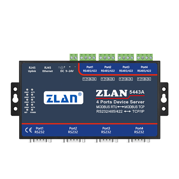 ZLAN5443A是上海卓嵐信息科技有限公司開發(fā)的新一代4串口服務(wù)器。可以實(shí)現(xiàn)4路串口數(shù)據(jù)轉(zhuǎn)TCP/IP,支持兩個(gè)10M/100M以太網(wǎng)口。ZLAN5443A支持Modbus TCP轉(zhuǎn)Modbus RTU的Modbus網(wǎng)關(guān)功能。Modbus網(wǎng)關(guān)支持多個(gè)Modbus 客戶端連接上同時(shí)讀取數(shù)據(jù),即“多主機(jī)”功能。