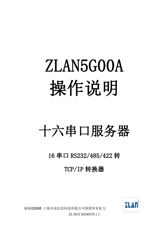 ZLAN5G00A串口服務(wù)器是上海卓嵐信息科技有限公司開發(fā)的一款機(jī)架式16串口RS232/485/422和TCP/IP之間協(xié)議轉(zhuǎn)化器。ZLAN5G00A支持16個(gè)RS232串口、16個(gè)RS485、RS422串口,且RS232支持流控。通過(guò)一根網(wǎng)線連接到ZLAN5G00A,實(shí)現(xiàn)16個(gè)串口同時(shí)全雙工工作,每一個(gè)串口的功能和單串口服務(wù)器ZLAN2100/3100相同。每路串口可作為TCP服務(wù)器、TCP客戶端、UDP、UDP組播。ZLAN5G00A是多串口聯(lián)網(wǎng)的理想選擇。
