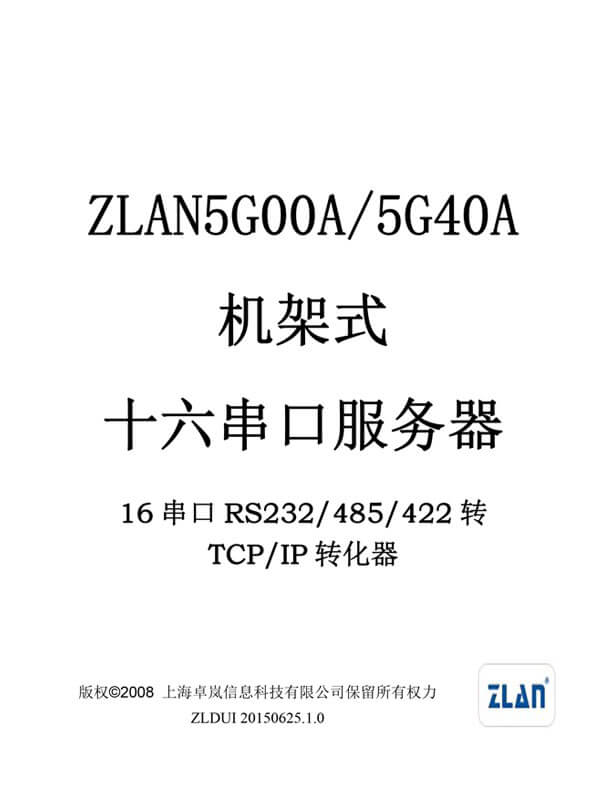ZLAN5G40A串口服務(wù)器是上海卓嵐信息科技有限公司開發(fā)的一款機(jī)架式16串口RS232/485/422和TCP/IP之間協(xié)議轉(zhuǎn)化器。ZLAN5G40A支持16個RS232串口、16個RS485、RS422串口,且RS232支持流控。通過一根網(wǎng)線連接到ZLAN5G40A,實現(xiàn)16個串口同時全雙工工作,每一個串口的功能和單串口服務(wù)器ZLAN2100/3100相同。每路串口可作為TCP服務(wù)器、TCP客戶端、UDP、UDP組播。ZLAN5G40A是多串口聯(lián)網(wǎng)的理想選擇。
