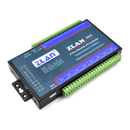ZLAN6842:這是一款使用以太網(wǎng)進(jìn)行控制的IO控制器,通常采用的通信協(xié)議為Modbus TCP協(xié)議,此時模塊的轉(zhuǎn)化協(xié)議選擇為Modbus TCP轉(zhuǎn)RTU,DI、DO、AI分別對應(yīng)不同的寄存器。如果希望通過Modbus RTU協(xié)議進(jìn)行控制也是可以的,此時將模塊的轉(zhuǎn)化協(xié)議設(shè)置為“無”,通過TCP發(fā)送Modbus RTU協(xié)議即可進(jìn)行控制。該款產(chǎn)品可以方便、可靠的通過以太網(wǎng)對開關(guān)量進(jìn)行采集、對繼電器進(jìn)行控制、對傳感器進(jìn)行采集。
