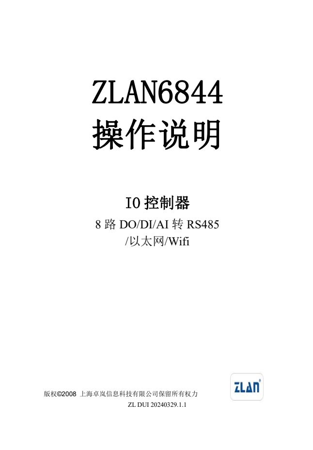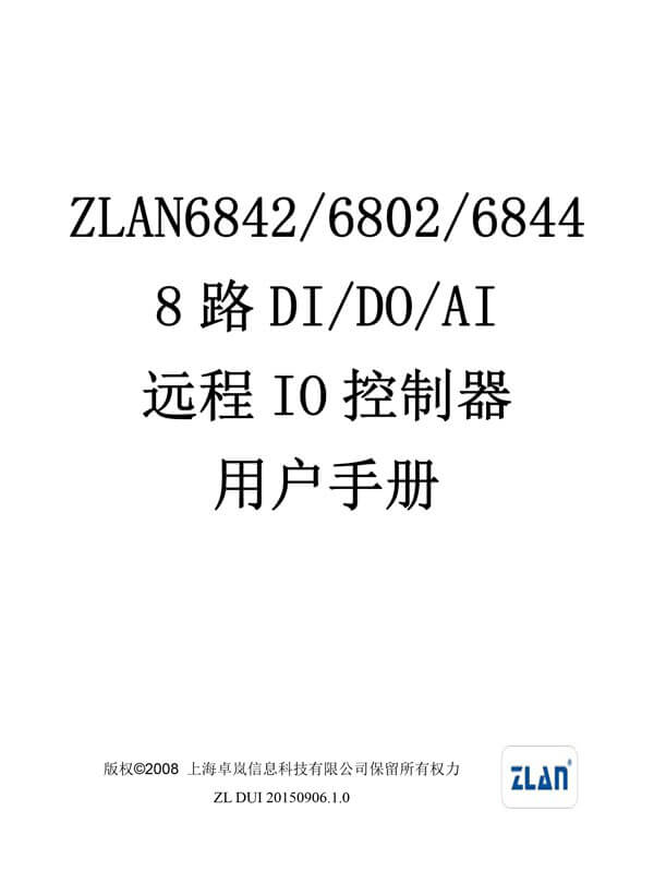 ZLAN6842、ZLAN6802、ZLAN6844是繼ZLAN6042之后上海卓嵐信息科技有限公司推出的8路遠程IO控制器。其控制的路數(shù)從6042 的4路擴展到8路,含有8路DI、8路DO,8路AI輸入。其中DI支持干節(jié)點和濕節(jié)點,帶光耦隔離;DO為繼電器輸出,具有5A 250VAC或5A 30VDC的控制能力;AI輸入中的前4路支持0~5V電壓量輸入,后4路支持4~20mA電流量輸入,精度10位。ZLAN6842、ZLAN6802、ZLAN6844分別支持以太網、RS485、Wifi這3種形式的通信方式。
