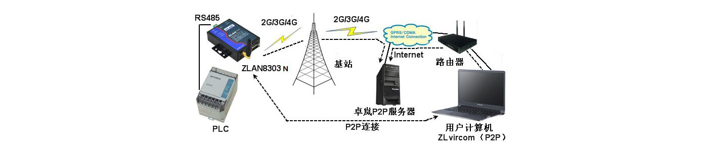 該應(yīng)用的型號(hào)是ZLAN8303N或者ZLAN8303N-5。該型號(hào)集成了卓嵐的P2P技術(shù),可以解決普通3G/4G DTU需要“端口映射”和“動(dòng)態(tài)域名”的不便。