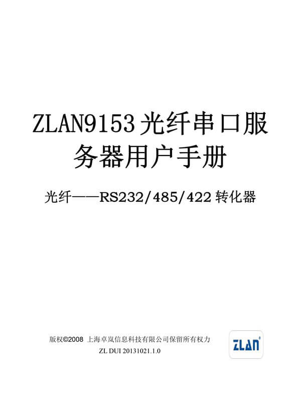 ZLAN9153光纖串口服務器是上海卓嵐信息科技有限公司開發(fā)的工業(yè)級串口——光纖轉換設備。 設備可實現(xiàn)一路RS232/RS485/RS422數(shù)據(jù)和光纖之間的透明傳輸。