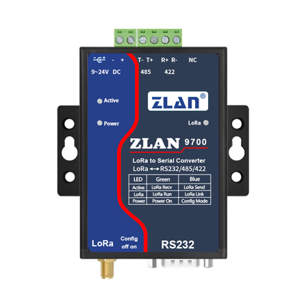 上海卓嵐的LoRa產(chǎn)品采用SX1287芯片,利用 SEMTECH 的 LoRa?專利調制技術,可以實現(xiàn)-140dBm的接收靈敏度和+20dBm 的輸出功率,戶外視距通訊距離8km,具有遠距離、低功耗、抗干擾的特點。目前卓嵐LoRa產(chǎn)品分為兩大類,一類是串口轉LoRa,型號ZLAN9700,它包含有3種串口形式,即RS232/485/422;另外一類是以太網(wǎng)(TCP/IP)轉LoRa,型號為ZLAN9743,可將LoRa和互聯(lián)網(wǎng)進行聯(lián)通。