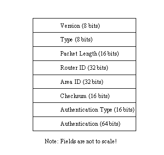 The Packet Length field contains the length of the message, including the header. The Router ID is the identification of the sending machine, and the Area ID identifies the area the sending machine is in. The Checksum field uses the same algorithm as IP to verify the entire message, including the header.